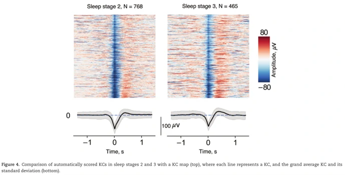 N3阶段的KCs评分非常好,这表明在N550峰之前没有一个大的正up-state峰值,这增加了评分波形是真正的KCs而不是δ波(delta波)的可信度。