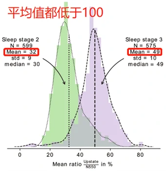 (3)为了区分慢波和KCs,计算了N2和N3阶段中所有评分KCs上状态和下状态(N550)的比值。假设下态和上态的振幅相同,慢波上下态的比值预计在100%左右,而KCs的比值预计更小。