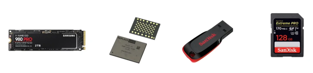 电脑的固态硬盘、手机的硬盘、U盘还有存储卡都属于闪存,如果再细分的话它们都属于NAND FLASH