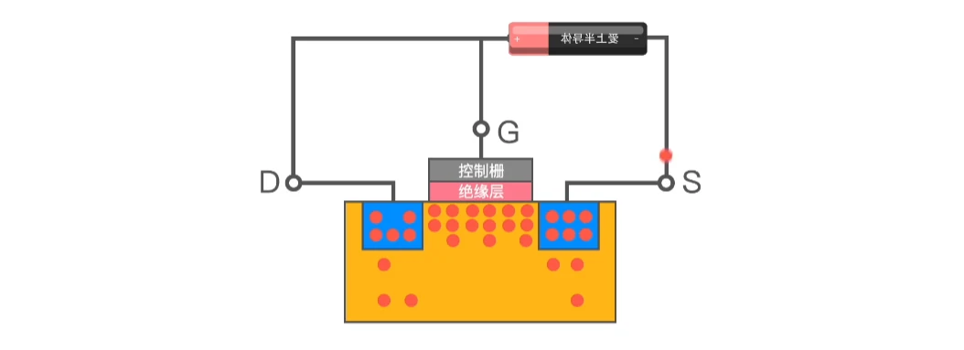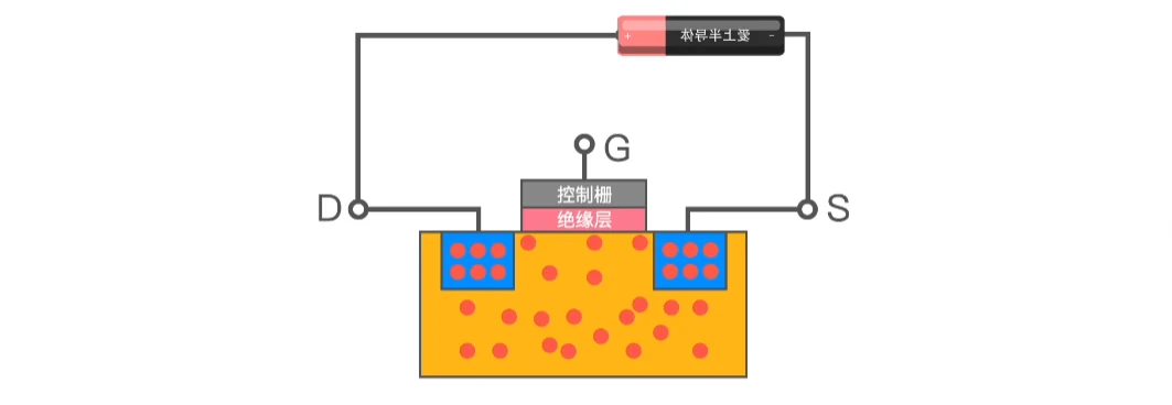 如果我们给DS极施加电压,这个晶体管就会有电流流过