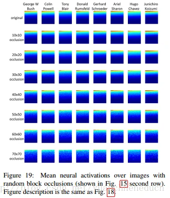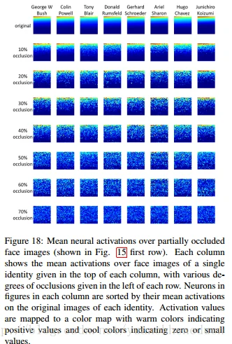 另外,还给出了遮挡情况下每个神经元被激活的情况,图18和19.