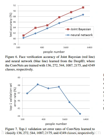 做法:指数级增加identity classes,通过top-1验证误差率观察分类能力,通过测试集的确认精确度观察学习到的隐藏层特征的性能。