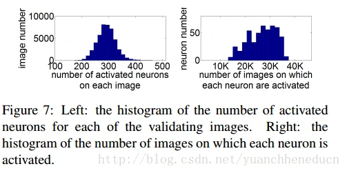 理解上图:left的单个bar表示有多少的图像的激活状态的神经元个数是x(横轴坐标)—>反应每张图像对应的激活状态的神经元个数。