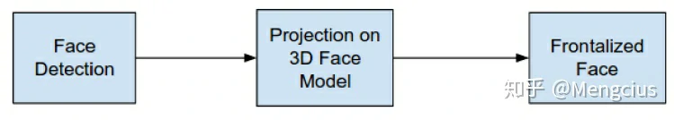 - DeepFace是将检测的人脸投射到3维模型上,再对齐到正脸。这个方法比较复杂,后面不用它也能取得很好的效果。