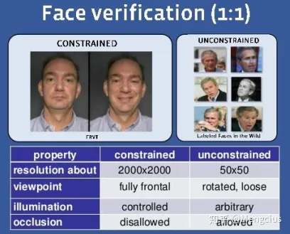 - 考虑无约束环境中的问题:分辨率不太高,视角可以侧脸和旋转,光照任意,遮挡可以有。