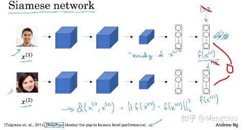 在Siamese网络中,以人脸验证为目标,特征提取和人脸识别是联合学习。