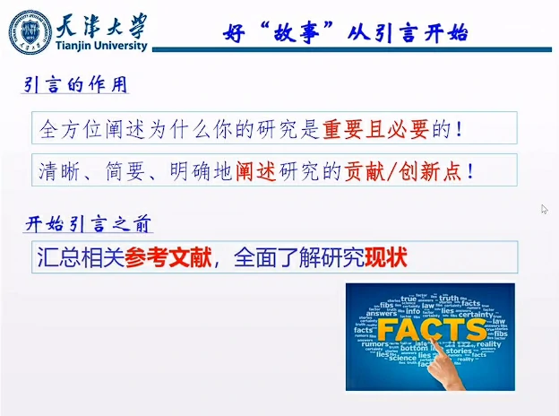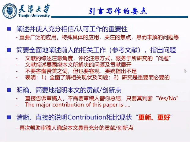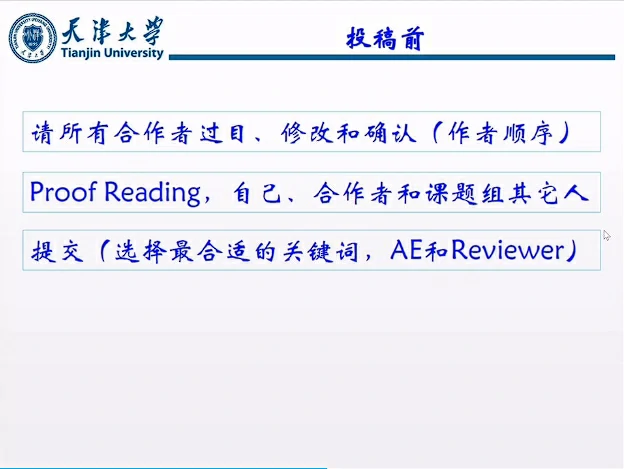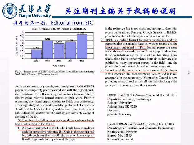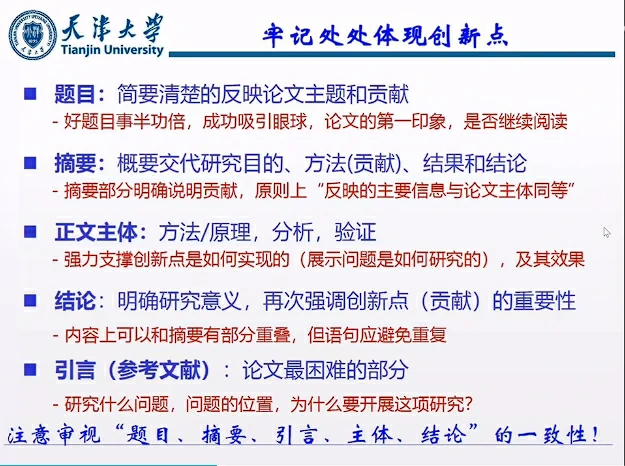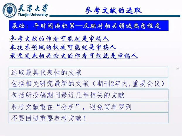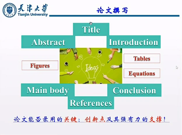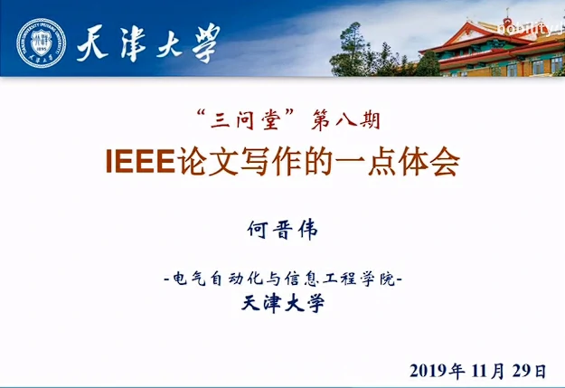 天津大学电气工程系教授《IEEE论文写作的一点体会》 发表于 2019-11-29 分类于 🌙逢坂杂谈与搬运 , ⭐一些讲座 阅读次数: Valine: 本文字数: 269 阅读时长 ≈ 1 分钟视频总结天津大学电气工程系和自动化学院团委联合推出的“三问堂”系列讲座通过线上形式举行。首场讲座由电气工程系何晋伟教授担任主讲、系主任刘艳丽副教授主持。何晋伟老师从问题“为什么要发表论文”出发,与同学们交流何为科技创新,随后详细地介绍了发表一篇论文从前期投稿准备到论文撰写过程、再到修改和应答审稿意见等过程中需要完成的工作和注意事项,并在最后着重强调了虽然论文写作有技巧、但科研没有捷径,勉励同学们能以质量代替数量,在潜心科研中取得好成绩。 参考资料https://www.bilibili.com/video/BV1FA411h7gu/