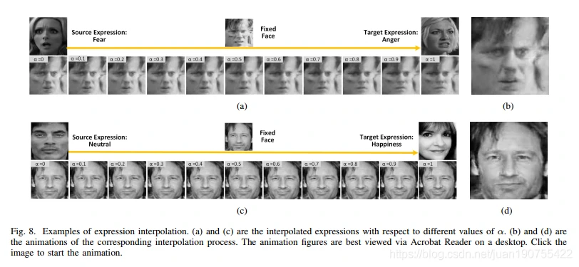 本实验验证,改变表情的特征会影响生成图片的表情,而不影响面部的其他属性信息。
