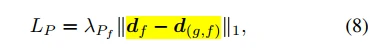 本文采用额外感知loss(additionally perceptual loss)来评估生成面部图片的差距。df是由面部编码器对面部图片编码后生成的高级语义特征,d(g,f)是生成的图片输入到面部编码器生成的高层语义特征。LP用于计算两个图片的差距。