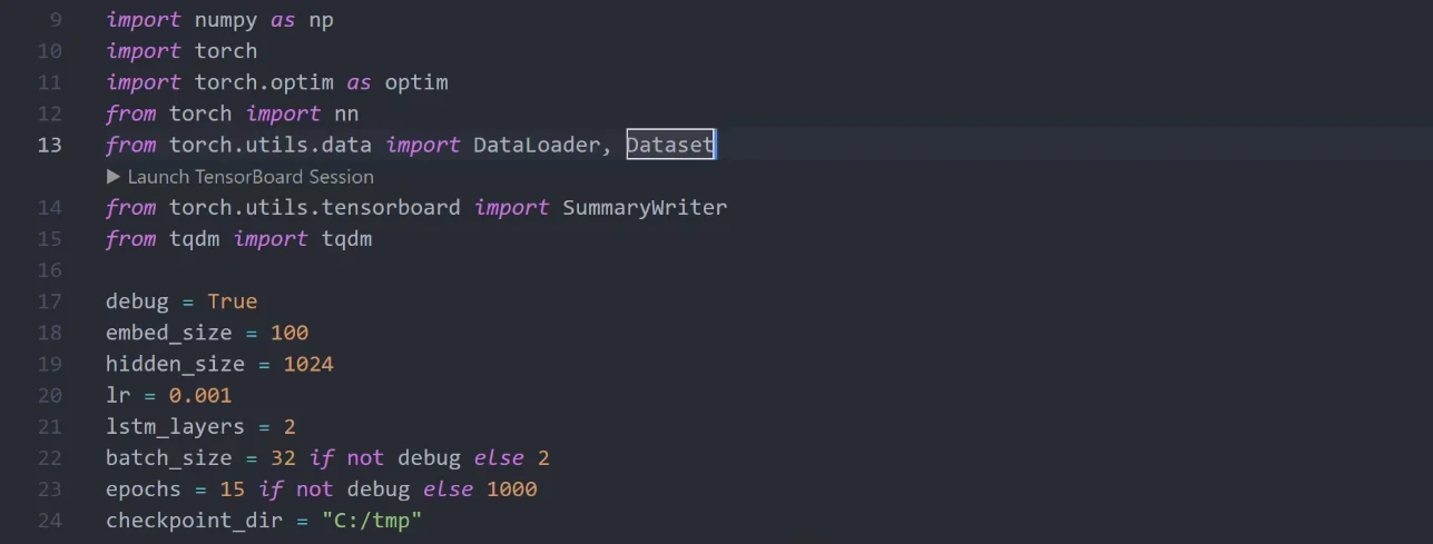 接下来可以利用PyTorch提供的DataSet和DataLoader来读取这个歌词文件。这两个类封装了基本的数据操作,比如切分训练数据、随机打乱数据、或者对数据进行简单变换等等,这样我们就不用自己去造轮子了。