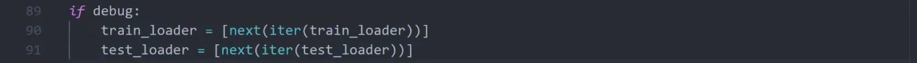 比如我们可以修改这里的dataloader,让我们暂时只用第一个batch的数据,并且我们只用batch中的前两个样本来做训练。