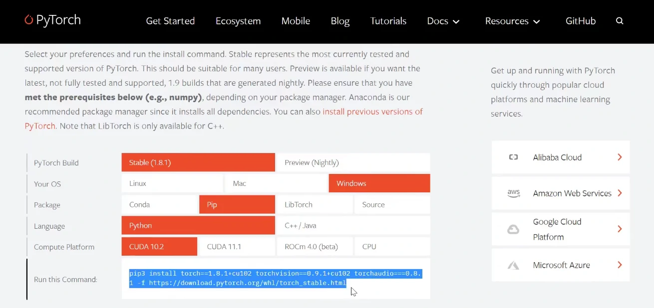 PyTorch的安装还是非常容易的,我们可以在PyTorch官网选择对应的操作系统、CUDA版本,Anaconda其实不是必须的,只是可以更好地进行包管理。最后复制下面的命令到控制台安装即可。