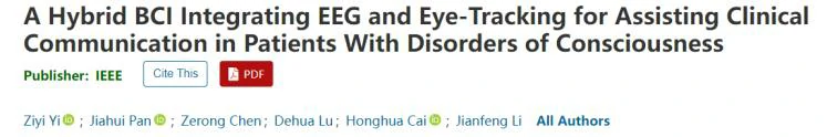 该论文发表于IEEE Transactions on Neural Systems and Rehabilitation Engineering (JCR Q1,中科院二区,CAAI B类期刊),题目为《A Hybrid BCI Integrating EEG and Eye-tracking for Assisting Clinical Communication in Patients with Disorders of Consciousness》。