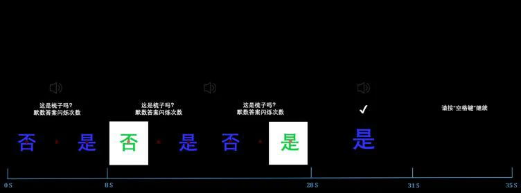患者主要通过注意力和注视来进行二元是/否交流。具体来说,系统向DOC患者展示情境定向问题,同时在问题下方的左右两侧显示文字块“是”和“否”。随机闪烁的文字块和对应的语音播报作为视觉和听觉刺激。实验要求患者选择性地专注于正确答案的刺激。刺激呈现时,相应文本块的文字颜色从蓝色变为绿色,背景颜色从黑色变为白色,亮度从1.27 cd/m²增加到90.76 cd/m²。每次刺激持续300毫秒,间隔700毫秒,刺激阶段共持续20秒。随机的视听刺激可诱发P300事件相关电位(ERP)。不同的目标位置会导致眼动注视位置的不同。此外,文字块亮度的变化会改变受试者的瞳孔大小,并且这种变化的程度会随着注意力的集中而增加。通过检测、分析刺激中产生的P300信号和眼动信号(注视位置、瞳孔反应)可识别患者选择专注的文字块。