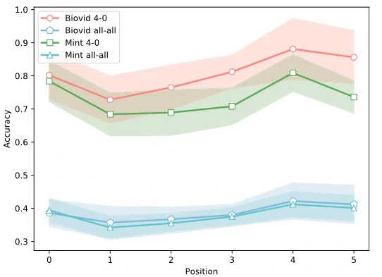 文章提出使用注意结构使深度网络更加关注疼痛估计的重要区域,例如在空间域中面部纹理变化的区域和在时间域中包含疼痛表情的帧,结果如图7所示,其中Position =4和Position =0分别表示有注意结构和没有注意结构的网络。可以看出,有注意力的网络性能更好。其中一个原因可能是,注意力结构使深层网络能够专注于重要的信息。由于视频中包含大量冗余信息,因此疼痛估计任务只需要关注相关内容即可。
