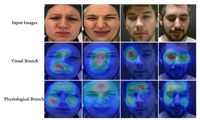- 文章使用热力图来说明面部疼痛识别和生理信号疼痛识别关注点是不同的,非常直观,将只用数据难以说明的点直观表述出来了;