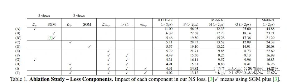 作者使用KITTI、Middlebury和ETH3D数据集进行评估,计算视差误差指标,并按照立体匹配领域的协议定义验证和测试集。评估采用固定的阈值τ,分别为KITTI固定τ = 3,Middlebury固定τ = 2,ETH3D固定τ = 1。在评估期间,考虑遮挡和非遮挡区域并具有有效的基准视差。