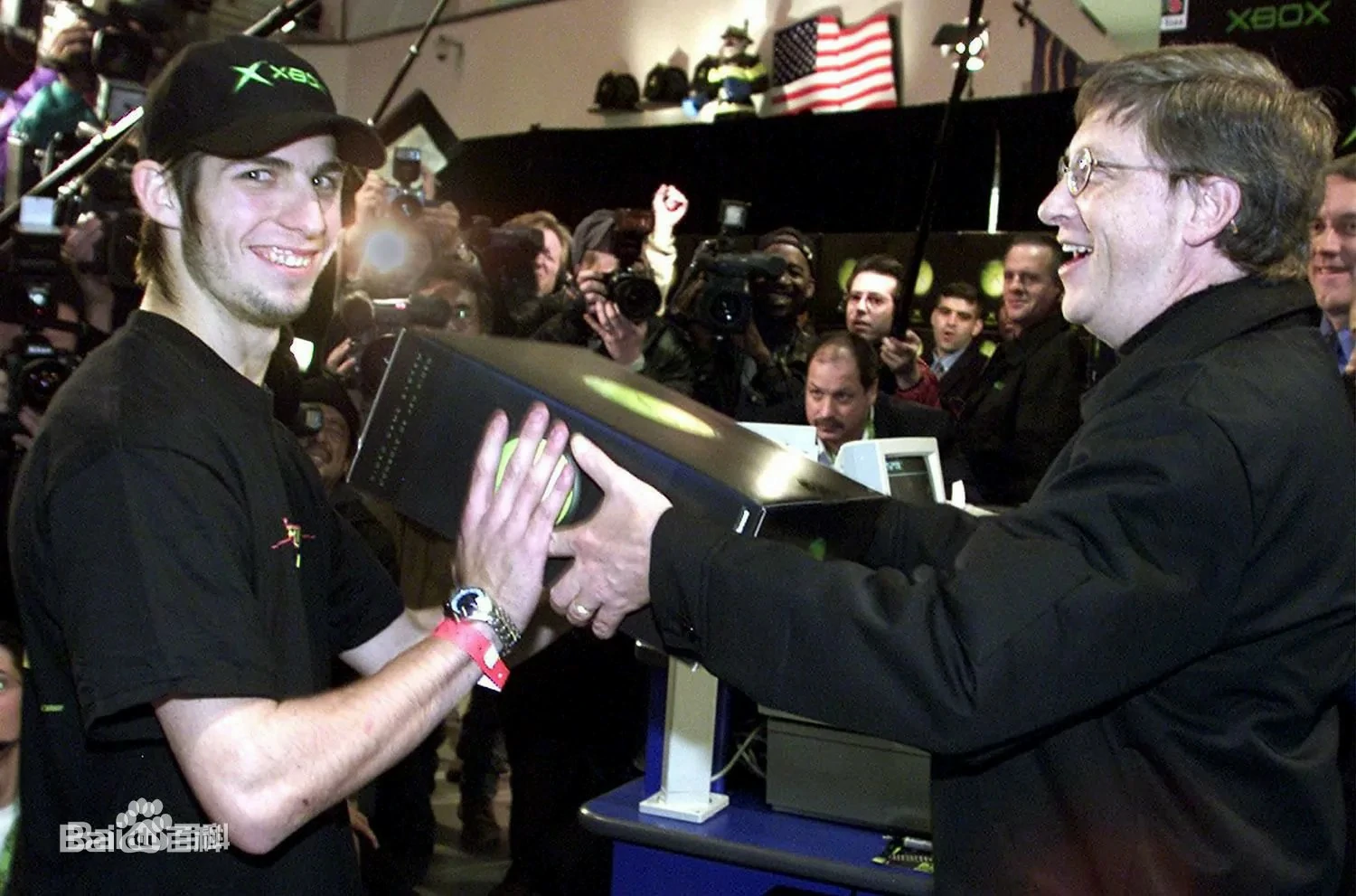 2001年11月14日深夜,比尔·盖茨亲自来到时代广场,在午夜时分将第一台Xbox交给了来自新泽西的20岁年轻人爱德华·格拉克曼,后者在回忆中说:“比尔·盖茨就是上帝。”性能超越顶级PC的Xbox让他们趋之若鹜。