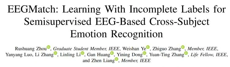 该论文发表于IEEE Transactions on Neural Networks and Learning Systems(中科院一区,IF=8.9),题目为《EEGMatch: Learning with Incomplete Labels for Semi-Supervised EEG-based Cross-Subject Emotion Recognition》。