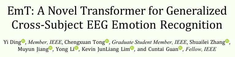 该论文发表于IEEE Transactions on Neural Networks and Learning Systems(中科院一区,IF=11.1),题目为《EmT: A Novel Transformer for Generalized Cross-Subject EEG Emotion Recognition》。