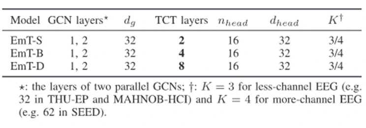 为了研究网络深度的影响并适配不同数据集,论文定义了三个主要变体,其核心区别在于时序上下文 Transformer(TCT)模块的层数(深度)。具体配置如下表1所示: