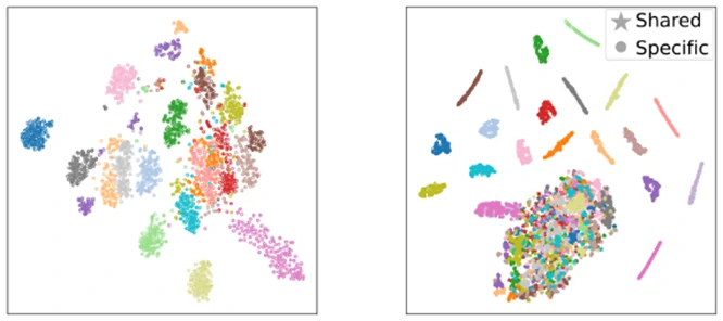 MindCross旨在从原始脑信号中分离出与受试者相关的成分和受试者不变的成分。图5左边展示了这19名受试者的原始脑数据,他们的脑数据彼此之间存在显著差异。经过 MindCross 处理后,受试者相关成分和受试者不变成分被成功提取,如图5右边所示。