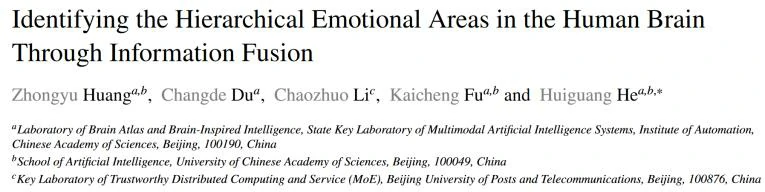该论文发表于Information Fusion(中科院1区,IF=14.7),题目为《Identifying the Hierarchical Emotional Areas in the Human Brain Through Information Fusion》。