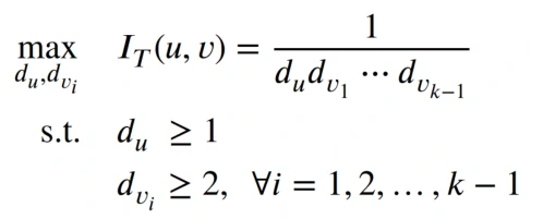 显而易见,最优解是^du=1,^dvi=2,其对应于节点u和v之间的路径。由于树中任何一对节点之间都一定存在至少一条路径,此时u和v之间的路径即是最短路径。上述分析表明,信息应该沿着最短路径传播。该如何量化路径携带的信息总量呢?如下定义路径信息。