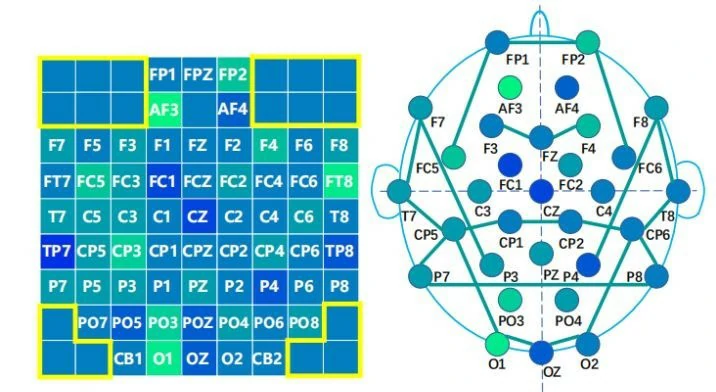 DEAP数据集记录由32名参与者在多媒体刺激下产生的数据。每个参与者需要进行40次试验,并在每次试验中观看1分钟的音乐视频。它们的生理信号是他们在观看音乐视频时采集的数据,每次试验的数据包括3秒的试验前信号和60秒的试验信号。该数据集包含32通道的脑电图信号和8通道的外周生理日志信号信号(PPS)。外周生理信号包括EOG、肌电图、GSR、BVP、呼吸和温度。所有参与者将对这些音乐视频,根据效价、唤醒和其他情感维度从1到9进行评分。