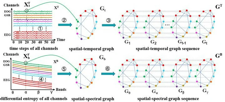 (1)设计了一种面向多模态情绪识别的异质时空和频空图表示。