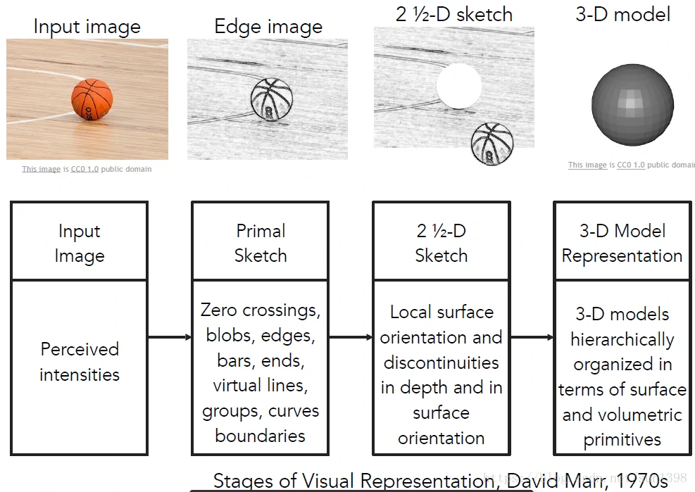 - 视觉是分层的,图像时多层的:输入层、边缘层、2.5D层、3D(最后重建)