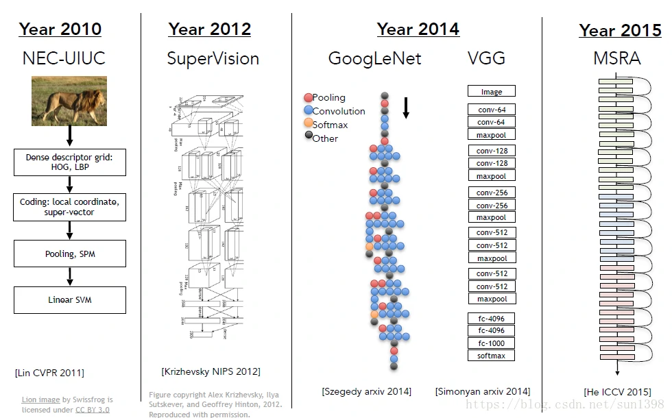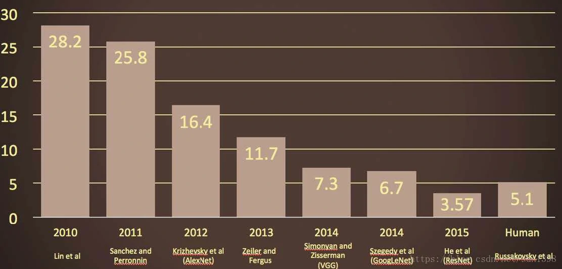 - 2012年AlexNet-CNN卷积神经网络使得错误率大幅下降,后续都是神经网络模型,2015年已经低于人类的识别率5.1%
