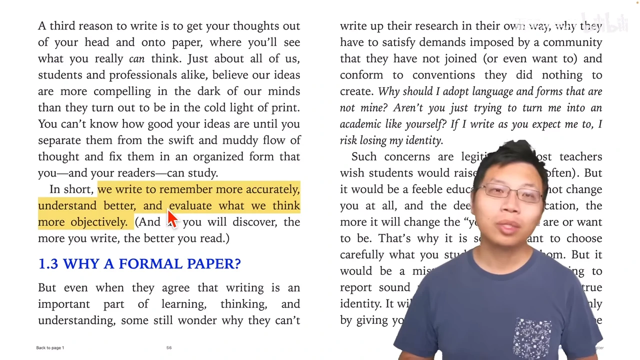 所以说,写作使我们,记得更加精确,理解更好以及评估我们的想法是不是客观的