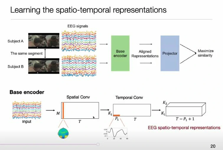 Contrastive Learning for Inter-Subject Alignment(CLISA)是张丹教授提出的基于对比学习的跨个体脑电情绪识别方法。该方法的样本的定义较为保守,观看相同的视频时,即感知觉一致时产生的脑电即为正样本,观看不同情绪触发视频为负样本。在模型的构建上引入了时域卷积和空域卷积这些模块,使之更具有生理的可解释性和适配数据的特点。