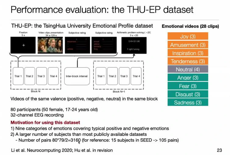 从脑电情绪识别的准确度来看,EEG识别的正确率普遍高于其它单模态检测,张丹教授从这一角度说明了为什么人们关注使用EEG进行情绪识别。