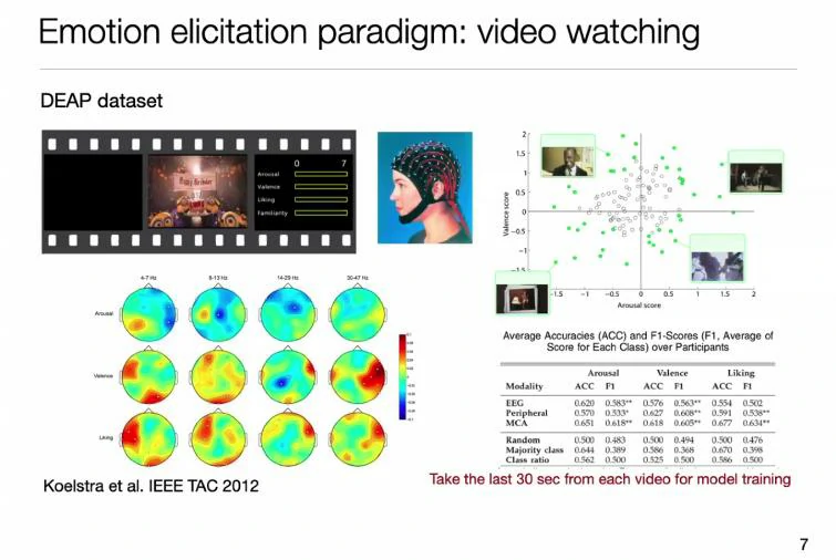 目前情绪诱导的常用方法是用视频来触发,在研究阶段暂时能满足,但真正走向应用时光用视频是不够的。真实的情况是人在任何自然场景环境下情绪都能发生,不一定需要视频或图片进行诱发,这也是在数据构建阶段遇到的挑战。