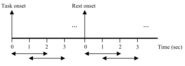 采用一个长度为2s的滑动窗口(窗与窗之间数据重叠率为50%)对连续脑电图时间序列进行分割, 经目视筛选以及阈值法去除有噪声的片段, 阈值为±100µv, 最后数据经过0.5Hz的高通滤波。序列分割示意图如图3所示: