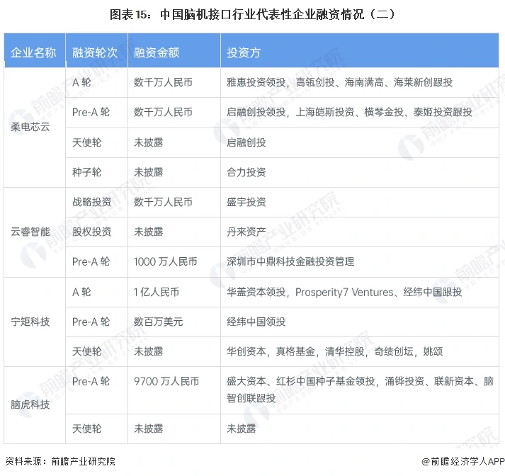 脑机接口公司研发投入极高,业内的年研发投入普遍超过其年收入的80%,因此,能否通过融资等手段获取充足的现金流以支持其漫长的研发周期成为脑机接口公司发展能力的关键因素。从融资情况来看,强脑科技是全球除Nerualink外唯一一家融资金额超过2亿美元的脑机接口企业,资本优势较大。除此之外,博睿康科技、脑陆科技、回车科技、宁矩科技、云睿智能等企业也获得了多轮融资。