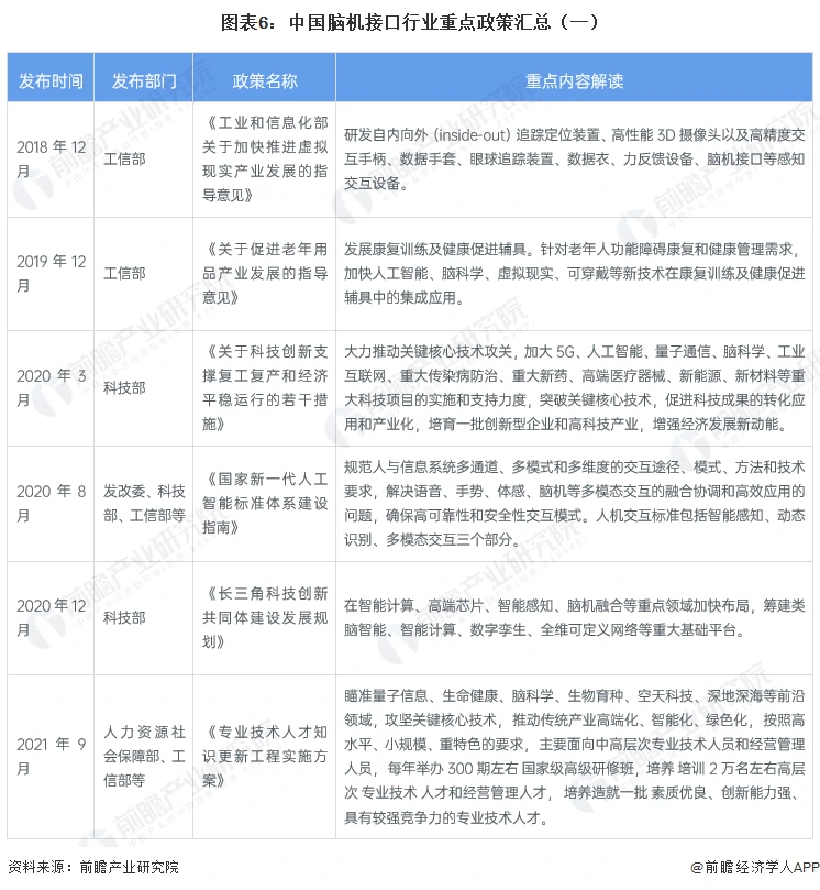 作为下一代人机交互技术,脑机接口近年来也受到政策重点关注,“十四五”规划和2035年远景目标将“脑科学”列为国家重点前沿科技项目。《“十四五”医疗装备产业发展规划》明确提出加快研发基于机器人、智能视觉与语音交互、脑机接口、人机交互与智能控制技术的新型护理康复装备。