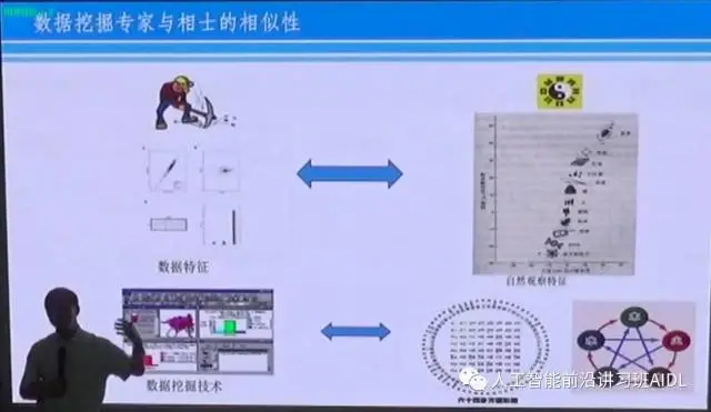 为什么说这个行业也特别像呢?我们不要把古代的相士简单看成迷信,其实他们也在做大数据,是一种垂直的大数据。什么是垂直的大数据?他们不具备我们的条件,比如说我们看手相,可以收集100万个人的手相,包括收集职业生涯链,根据手相和职业生涯寻找特征,然后再研究他的特征,可以用科学的方式研究这个问题。但是古代不可以,古代是一种垂直的,古代的人也会掌握很多知识,这个知识叫Knowledge Graph,但是这是脑袋里固化的一种知识,比如说日月星辰的变化、四季的变化、各种事物之间相生相克的关系,包括动物的食物链和各种知识。他们还掌握一些基本的工具,比如说金木水火土五行的理论和算卦的理论,这东西是他们掌握的非常原始的、非常朴素的,你可以说是非科学化的知识结构和工具。所以,他们跟我们也是很像的。