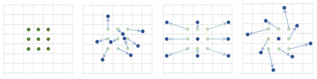 空洞卷积可看成是原始卷积更进一步的扩展,通过在原始卷积的基础上引入空洞率这个超参数,用于调节卷积核的间隔数量。比如,原始卷积核其空洞率为1,而对于空洞率为k的卷积则用0去填充空白的区域。