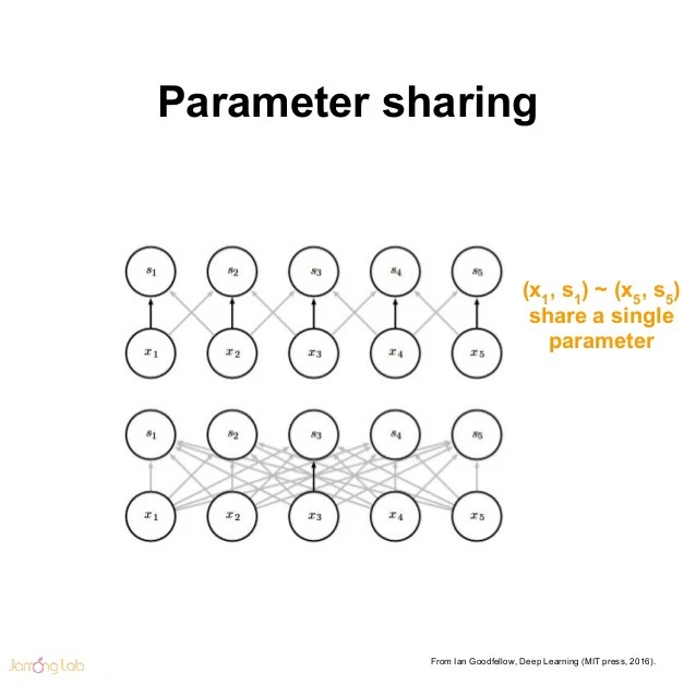 在传统的神经网络中,每个元素都使用一个对应的参数(权重)进行学习。但是,在CNNs中卷积核参数是共享的。权值共享,也称为参数共享,是指在计算图层的输出时多次使用相同的参数进行卷积运算。