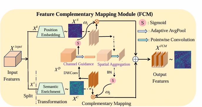 首先,为了缓解主干网络中的信息不平衡问题,并促进语义信息与空间位置信息的有效融合,设计了特征互补映射模块(FCM)。