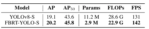 在AI-TOD数据集 (表 3),FBRT-YOLO-S相比基线YOLOv8-S,在参数量和FLOPs大幅降低的同时,AP提升了1.1%,AP50 提升了2.2%。直接证明了FCM和MKP模块对于提升小目标检测性能的有效性。