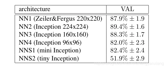 - 第一种是Zeiler&Fergus架构,22层,140M参数,1.6billion FLOPS(FLOPS是什么?)。称之为NN1。