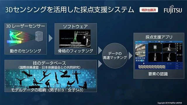 体操竞技的动作华丽炫目、动态感十足,且技术难度大,所以对于裁判而言,评分也愈发困难。历届奥运会上质疑裁判员评分不公的情况多有发生。为了让赛事评分更加公正,此次东京奥运会在体操项目上引进了由日本富士通公司开发的AI评分辅助系统,在之前的世锦赛,国际体操协会就应用了该评分系统。据悉,本届东京奥运会运动员的最终得分,就是结合AI和裁判的判断,再经裁判综合判断后,最终打出的分数。评分辅助系统如图所示。