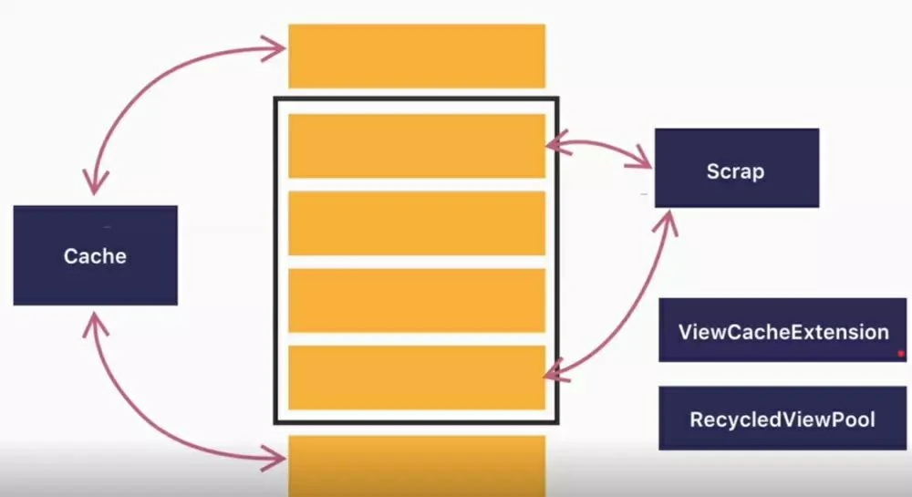 ArrayList mAttachedScrap → 缓存屏幕中可见范围的ViewHolder