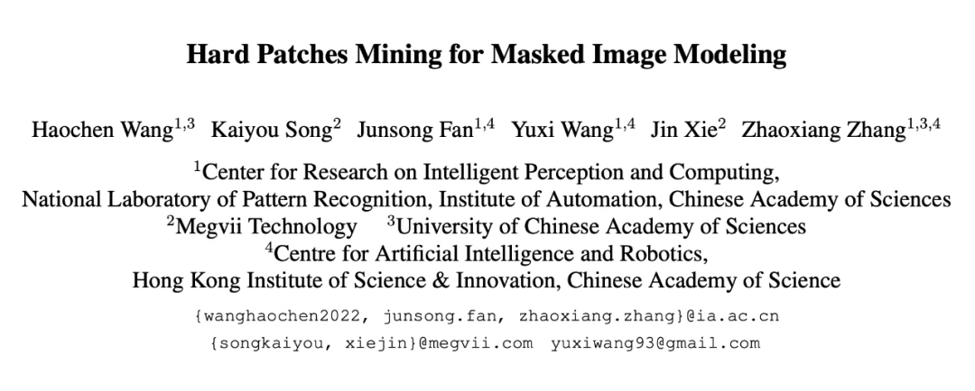 - 论文标题:Hard Patches Mining for Masked Image Modeling