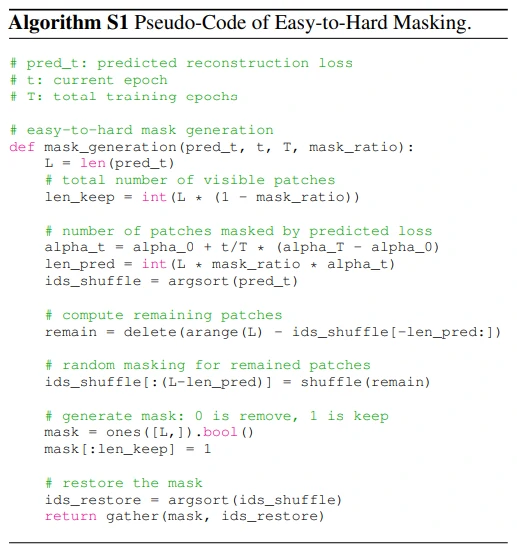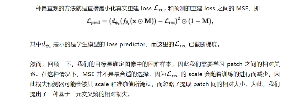 接下来,该问题就转化为了如何评判某一个 patch 是否为困难样本。我们自然地想到:「如果某一 patch 难以重建,即重建 loss 较大,则它为困难样本」。