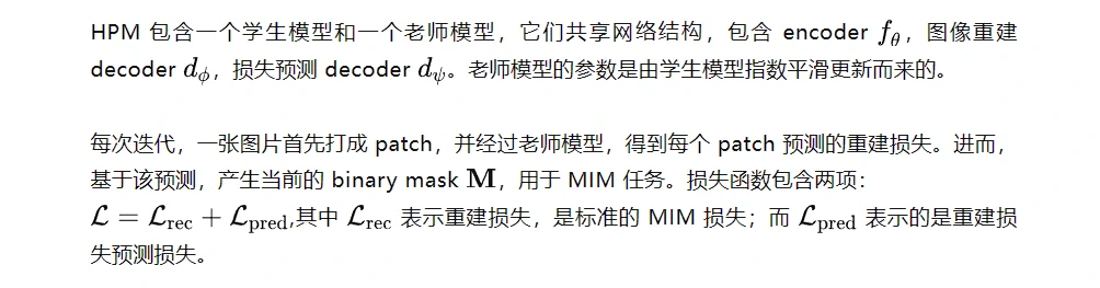 本文介绍了一篇在自监督掩码学习(Masked Image Modeling)领域的原创工作 HPM (Hard Patches Mining for Masked Image Modeling)。